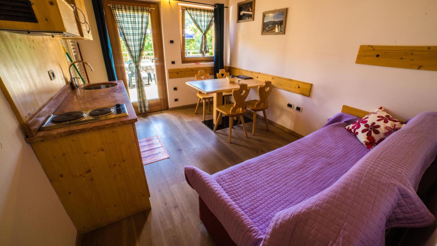 Appartamento con 1 Camera da Letto (2 Adulti + 2 Bambini). Each apartment comes with wooden furniture and floors. It features a furnished terrace overlooking Lake Ledro. It offers 1 bedroom and a separate living room with sofa bed and kitchenette. Bed linen and bath towels are included as is weekly cleaning. Additional cleaning is at an extra cost. ;