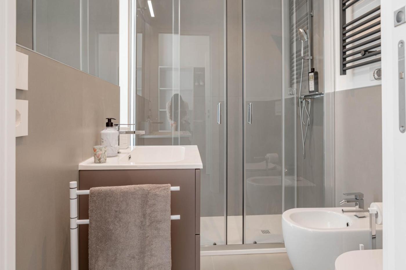 Appartamento con 3 Camere da Letto e con Balcone. Boasting a private entrance, this air-conditioned apartment features 1 living room, 3 separate bedrooms and 3 bathrooms with a shower and a bidet. In the kitchen, guests will find a stovetop, a refrigerator, a dishwasher and kitchenware. The spacious apartment features a washing machine, a coffee machine, a seating area, a flat-screen TV, as well as sea views. The unit has 5 beds.